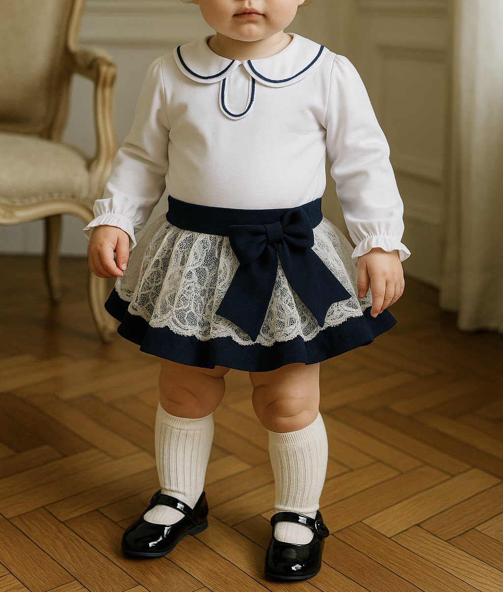 Velvet Tutu Skirt and Lace Blouse Set in Navy