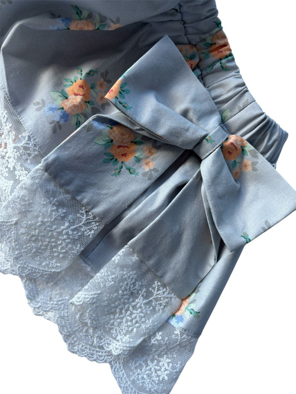 Blouse and Bloomer Skirt Wine Red Set with Lace Details