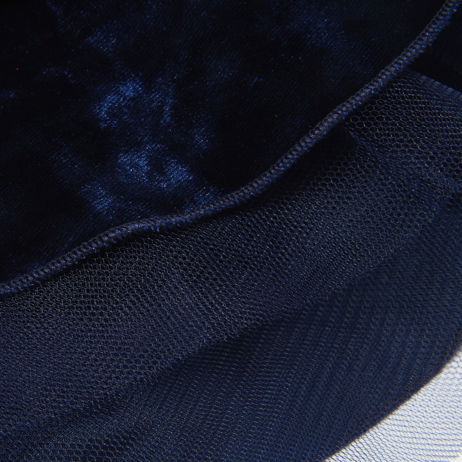 Paired with the blouse is a deep navy blue velvet tutu skirt, composed of 92% polyester and 8% elastane for a luxurious yet comfortable fit. Layered over tulle (100% polyamide), the skirt creates a voluminous silhouette that twirls with every step, making it perfect for special occasions and dress-up moments.